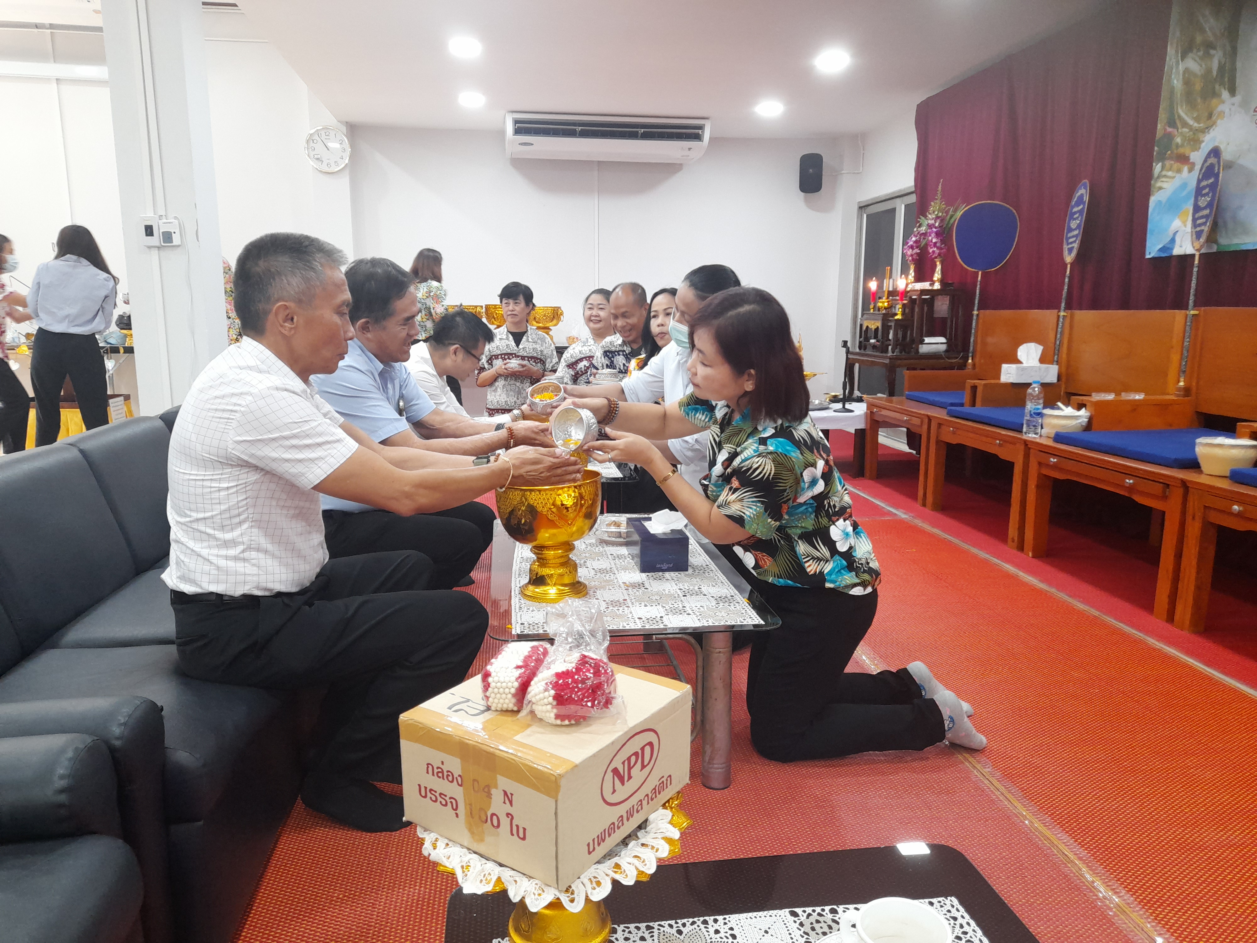Employee respesentatives of Union Plastic Public Company Limited. Executives participated in Songkran watering ceremony. in Saha Union Group,Bang Chan District Tuesday 9 April 2024.