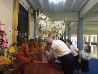 Management representatives and employees of Union Plastic Public Company Limited together with companies in Saha-Union Group, Bangchan District On the Vesak Day Offering linen, Bang Pheng Tai Temple And offering flowers to the temple above